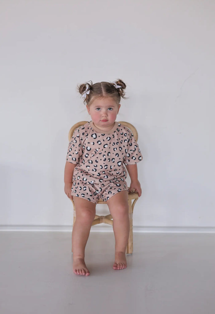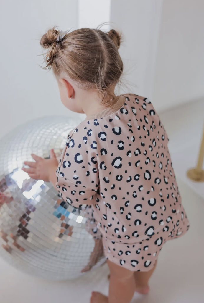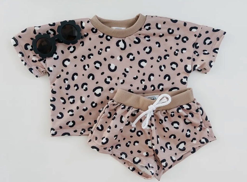 Upgrade your little ones wardrobe with the Autumn Prowl Set. This stylish short and top set boasts a fierce cheetah print, perfect for making a statement. With a relaxed and oversized fit, you'll stay comfortable and on-trend. Made from a light weight blend of 45% cotton and 55% polyester for a breathable and comfortable feel.