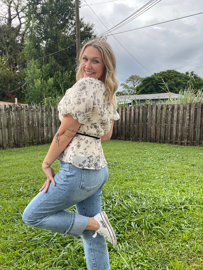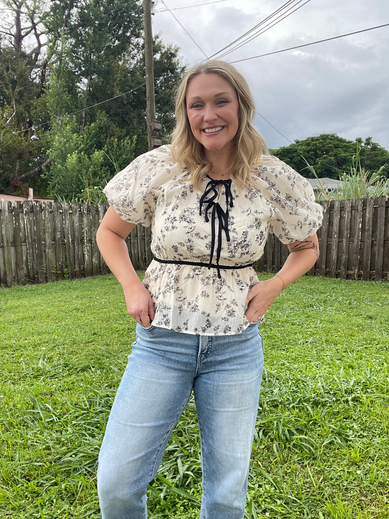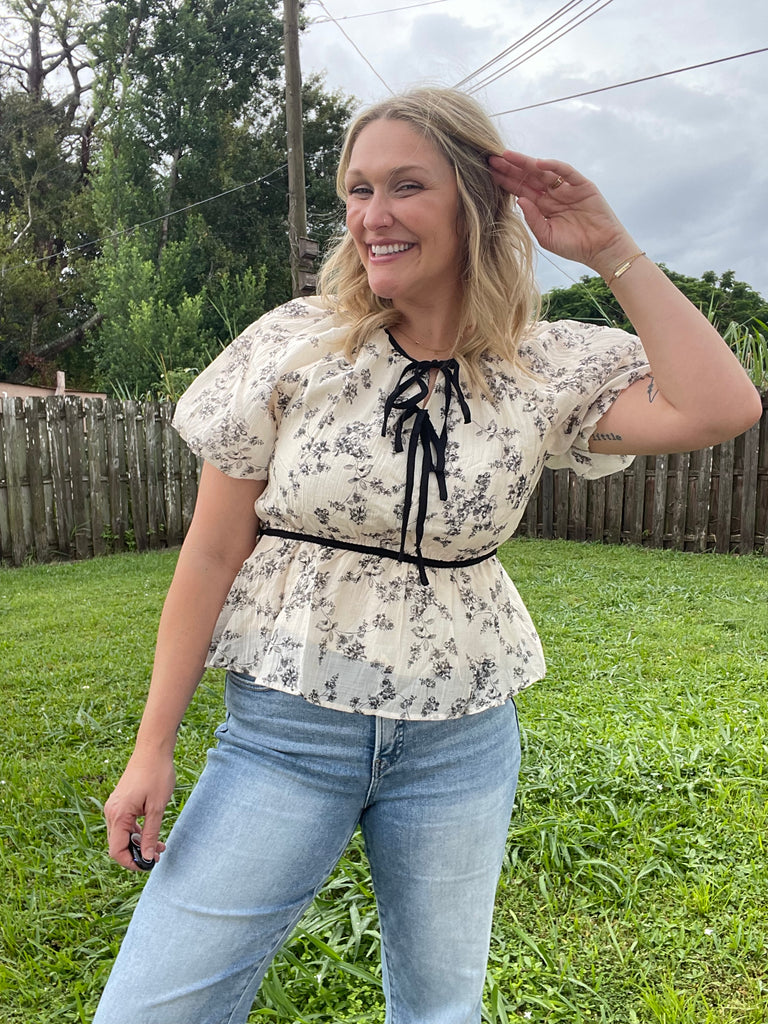 Introducing the Betzy Bow Blouse - a must-have for any fashion-forward wardrobe. With elastic sleeves and a charming bow detail, this stylish top is both comfortable and chic. Its delicate textured floral design adds a touch of elegance to any outfit. Elevate your style with this versatile and trendy blouse.