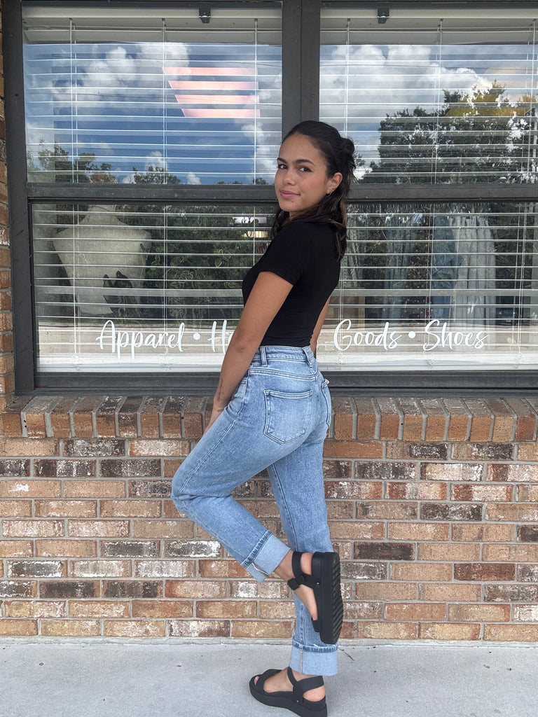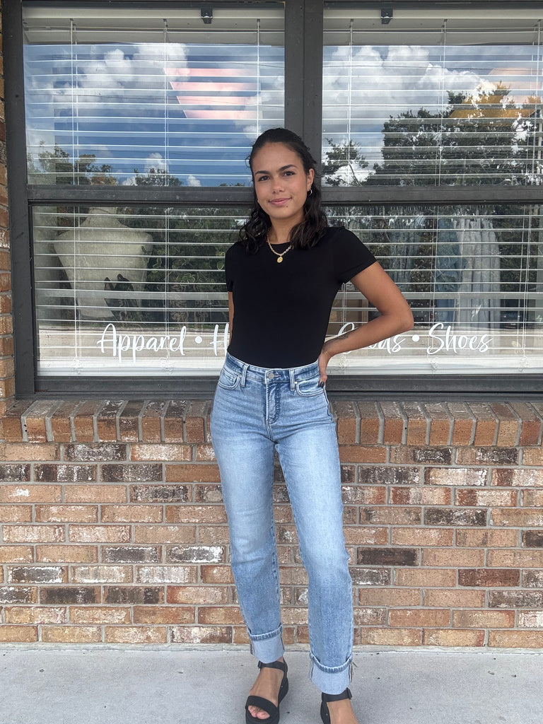 Discover the perfect fit with our Endless Shore Denim. The light wash and high rise design flatters your figure while the tummy control feature provides comfortable support. The straight leg and cuff detail add a touch of style to this versatile piece. Experience the ultimate blend of fashion and functionality.