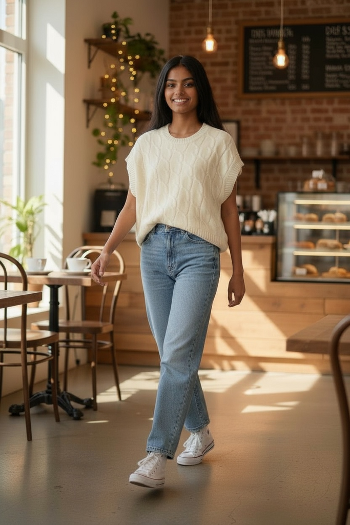 Introducing Cream Brûlée knit sweater, the perfect addition to your wardrobe. Made with a lightweight and cozy cable knit material, this sleeveless sweater is available in 3 stunning colors. Stay stylish and comfortable all day long.